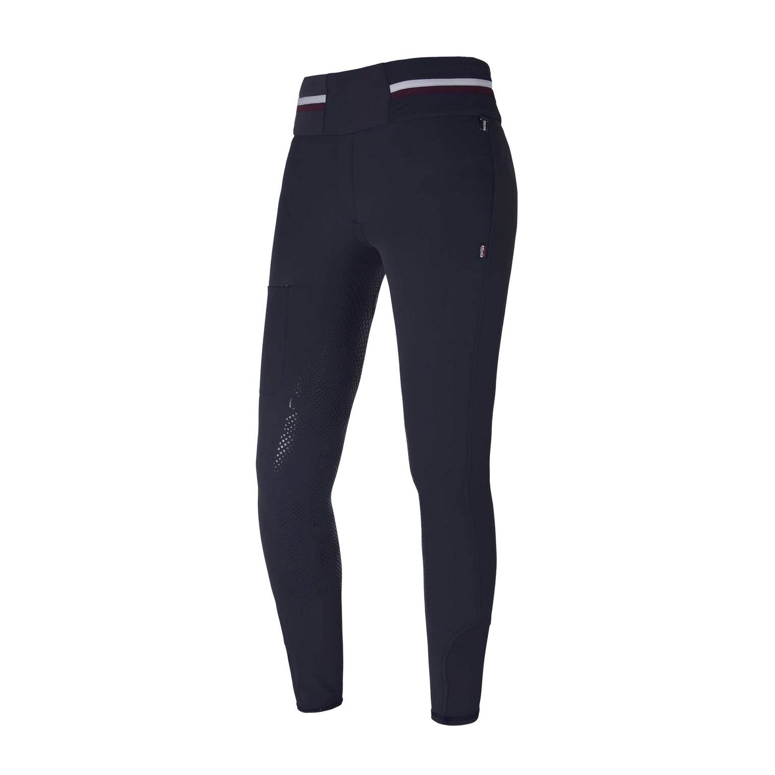 Breeches in soft technical E-Tec fabric. High waist rise with wide waistband. Powerful 4-way stretch. Water, dust and grease repellent. Breathable. Full grip with KL logo. Contrast stripes on waistband. Mobile pocket with zipper on thigh. Embroidery on back. Logo patch on thigh. Corporate metal hook on side.