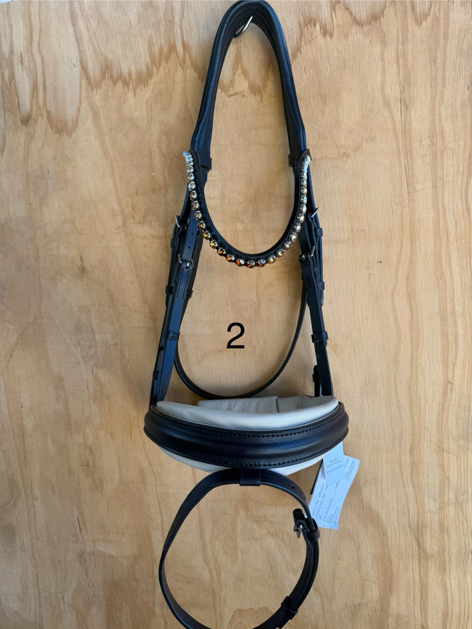 available nosebands: 4.5 anatomical with cut out, Comfort XS anatomical 5cm, Leeds anatomical 5cm (no seams on inside). All are standard with crank, but can be ordered without. Other noseband width are available to order. We stock these 3 as they are the most popular.