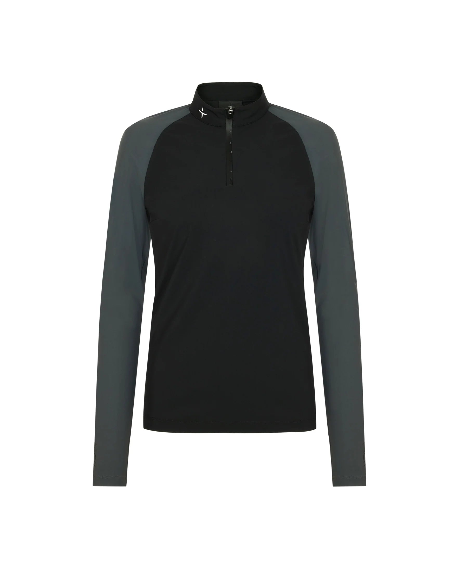 Crafted from technical jersey, it is breathable and quick-drying, enhancing its functionality and comfort during heavy activity. It features a sealed zipper closure with a delicate print.