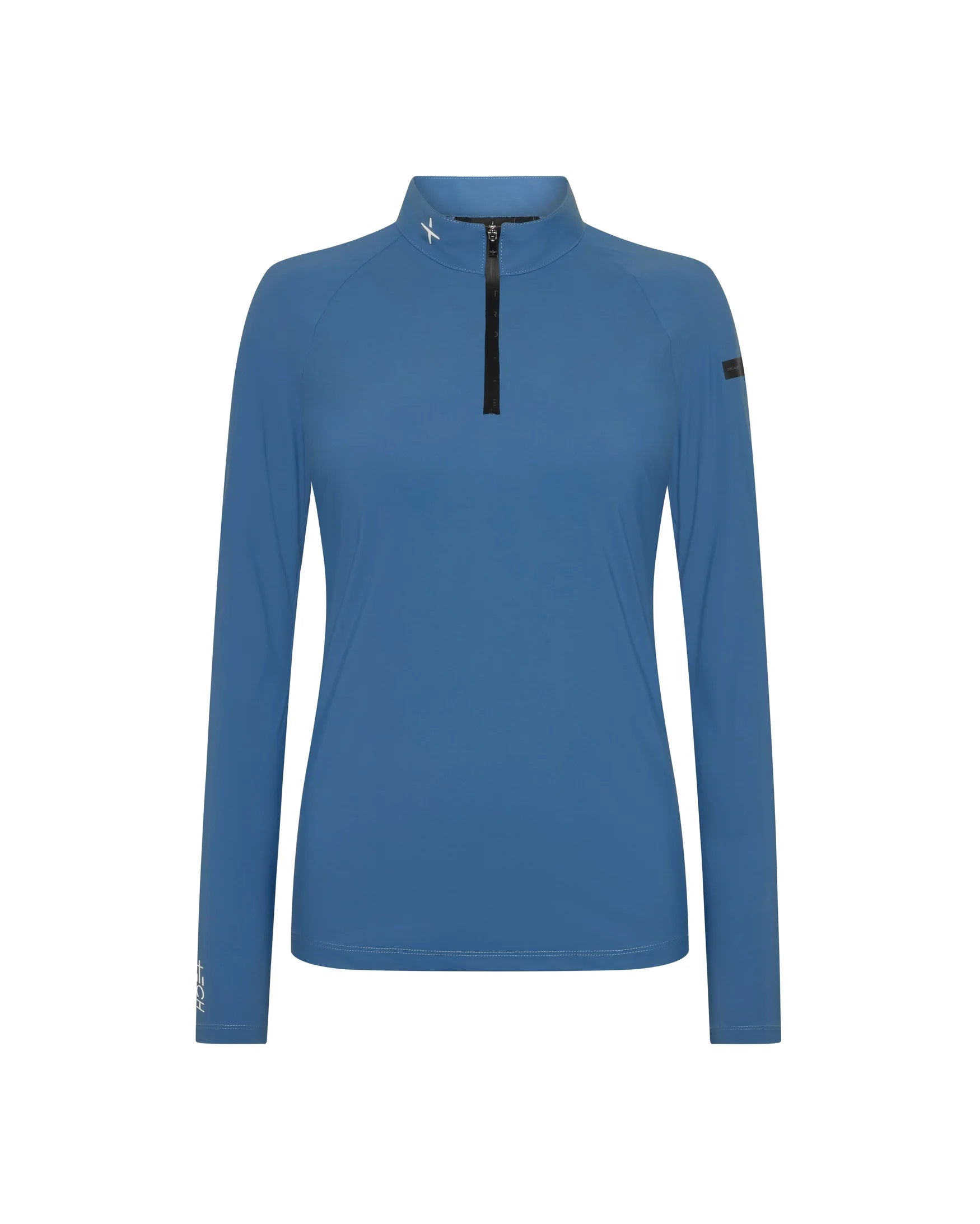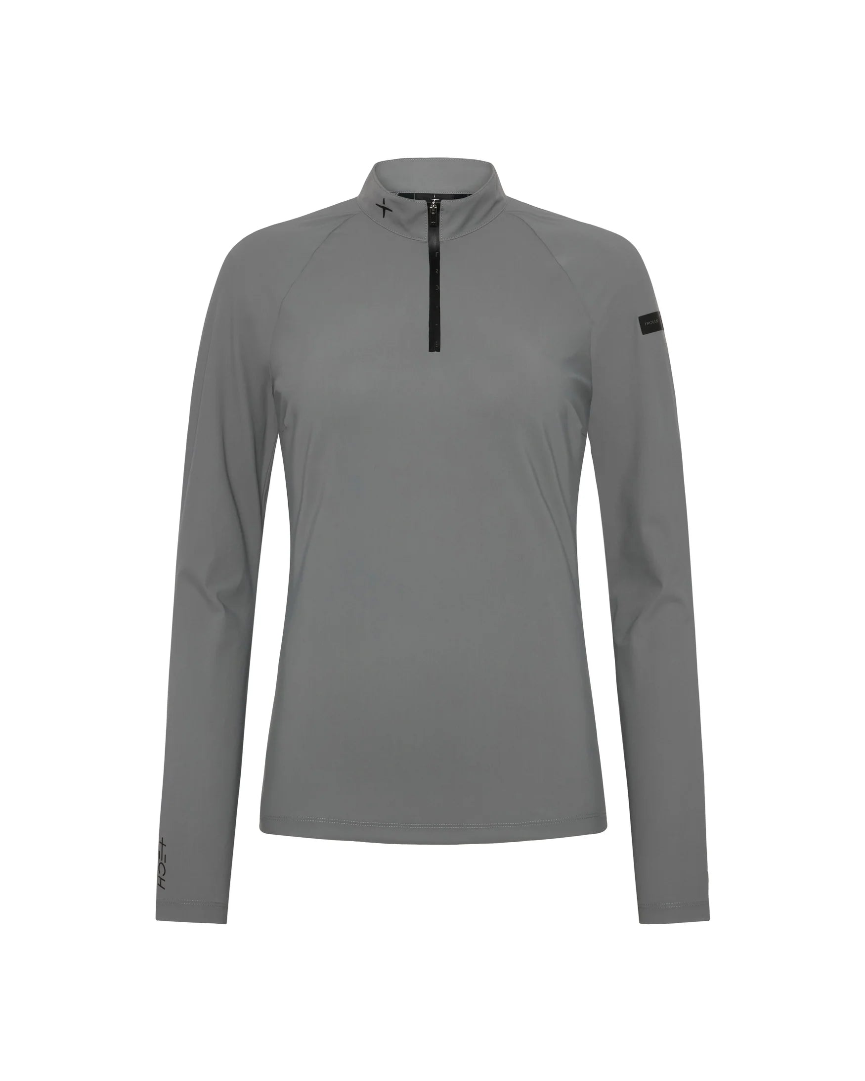 Crafted from technical jersey, it is breathable and quick-drying, enhancing its functionality and comfort during heavy activity. It features a sealed zipper closure with a delicate print.